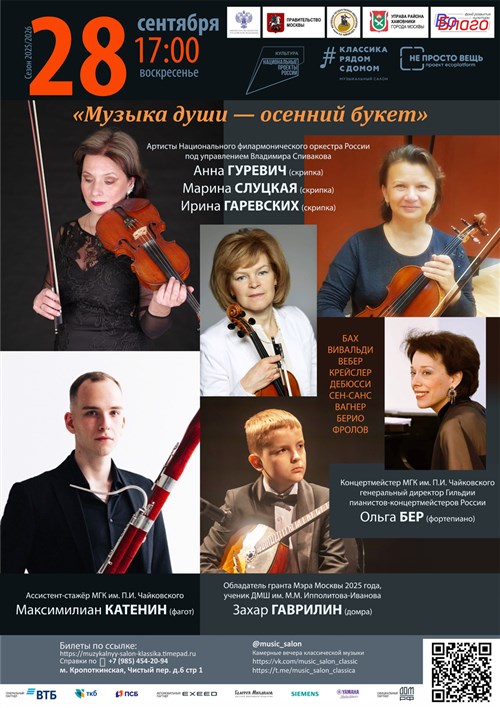 Бах, Вивальди, Вебер, Крейслер, Дебюсси, Сен-Санс, Вагнер, Берио, Фролов