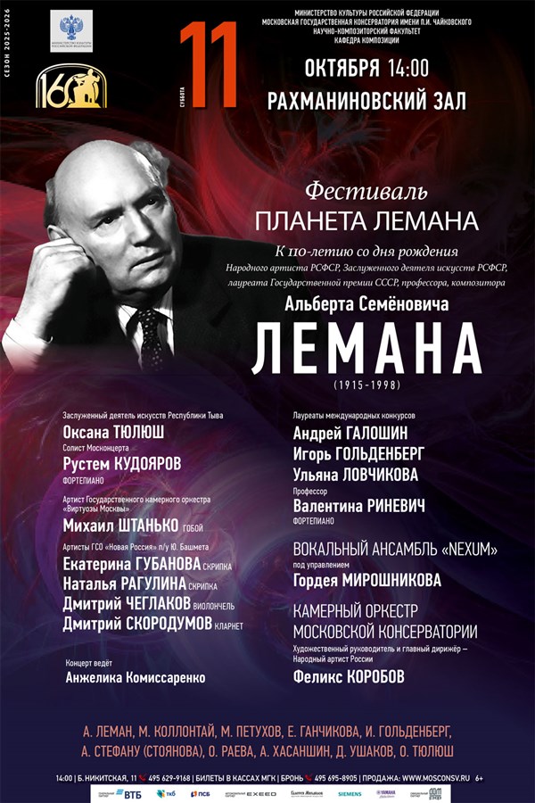 К 110-летию со дня рождения Народного артиста РСФСР, Заслуженного деятеля искусств РСФСР, лауреата Государственной премии СССР профессора, композитора Альберта Семёновича Лемана (1915–1998)