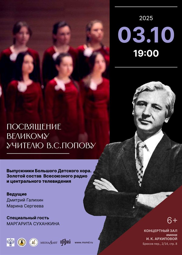 Концерт ко дню учителя, посвящается памяти выдающегося педагога и основателя Большого детского хора В. С. Попова
