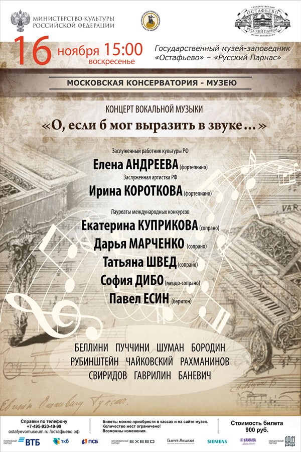 Беллини, Пуччини, Шуман. Бородин, Рубинштейн, Чайковский, Рахманинов, Свиридов. Гаврилин. Баневич