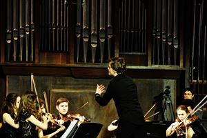 Художественный руководитель и дирижёр оркестра – студент факультета оперно-симфонического дирижирования Иван Никифорчин. В репертуаре оркестра, помимо известных и часто исполняемых произведений, также есть и редко звучащие сочинения. Так, в прорамме концерта исполнялись 2 произведения Германа Галынина (1922—1966): ария для скрипки и струнного оркестра (1959), а также сюита для струнного оркестра (1949).