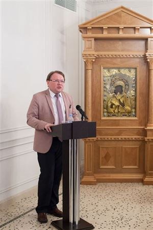 14:00. Открытие конференции. Приветственные слова: Митрополит Волоколамский Иларион, председатель Отдела внешних церковных связей Московского Патриархата, ректор Общецерковной аспирантуры и докторантуры имени святых равноапостольных Кирилла и Мефодия, доктор богословия, доктор философских наук, профессор Соколов Александр Сергеевич, Заслуженный деятель искусств Российской Федерации, председатель Международного союза музыкальных деятелей, ректор Московской государственной консерватории имени П.И. Чайковского, доктор искусствоведения, профессор Конторович Лев Зиновьевич, Народный артист Российской Федерации, Заслуженный деятель искусств Российской Федерации, заведующий кафедрой хорового дирижирования Московской государственной консерватории имени П.И. Чайковского, профессор