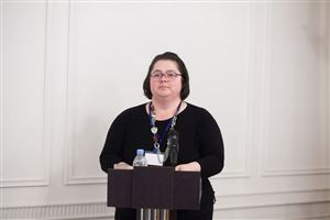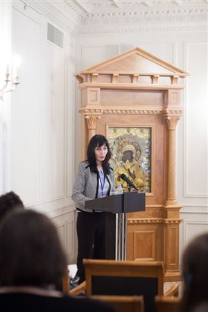 Заседание ведёт Гурьева Наталия Валерьевна, кандидат искусствоведения, руководитель Научно-творческого центра церковной музыки при кафедре хорового дирижирования Московской государственной консерватории имени П. И. Чайковского