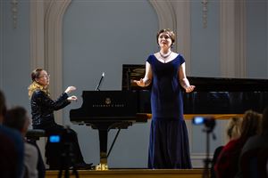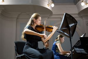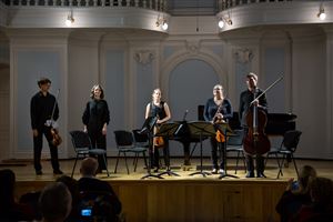 На сцену в этот поздний вечер вышли студенты и аспиранты консерватории: Полина Кумылганова (сопрано), Маргарита Невлер (фортепиано), Сергей Путников (скрипка), Евгения Шмидт (скрипка), Ольга Юрасова (альт), Владимир Калинин (виолончель), а также трио в составе: Валерия Старикова (фортепиано), Анна Михайлова (скрипка), Мария Михайлова (виолончель). Партия фортепиано: Маргарита Микитаева.