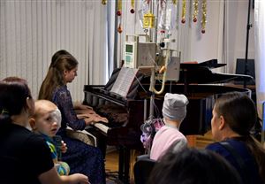 В Рождественский сочельник студенты, сотрудники и волонтёры Благотворительной программы «Консерватория — детям» приехали к пациентам Детского онкологического отделения Национального медицинского исследовательского центра имени Н. Н. Блохина. 6 января в Конференц-зале Онкоцентра состоялся новогодний концерт и кукольный спектакль «Когда родился Дед Мороз». В организации и проведении мероприятия приняли участие Ярослава Кабалевская, Марта Глазкова, Юлия Зверева, Ульяна Трофимова, Мариам Читанава, Анжела Шумекова и партнёры программы — театр «КИТ».