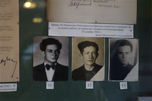 Великая Отечественная война — одно из самых трагичных и значимых событий в истории человечества. Она затронула жизни миллионов людей, в том числе и Московскую консерваторию. Студенты, педагоги и сотрудники воевали с оружием и с музыкальными инструментами в руках. Архивом Московской консерватории была проведена значительная работа по восстановлению и поиску новых имен консерваторцев-фронтовиков, в первую очередь – добровольцев Восьмой Краснопресненской дивизии народного ополчения. Благодаря привлечению новых исторических источников – книг поименного учета личного состава 8 ДНО, хранящихся в Тверском ОВК, а также глубокому научному поиску в материалах Архива – личных делах, карточках, списках студентов и преподавателей, стало возможным идентифицировать, реконструировать жизненный и боевой путь десятков студентов и сотрудников Московской консерватории, чья жизнь оказалась связана с Великой Отечественной войной. Десять лет назад, когда архив проводил выставку к 70-летию Победы, был представлен список «неизвестных» ополченцев – тех, у кого не было известно ничего, кроме фамилии и инициалов. Тогда он насчитывал 79 имен. На сегодняшней выставке расположена обновленная версия этого списка, в которой 71 одно имя восстановлено, но 8 до сих пор остаются неизвестными. Одновременно, в процессе научных исследований единый поименный список ополченцев Московской консерватории был пополнен еще пятьюдесятью двумя именами.