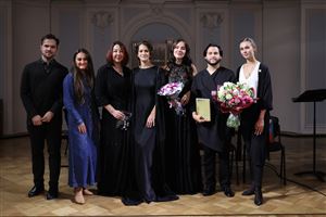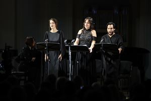 Высокая требовательность к литературному источнику и его музыкальному воплощению ставит вокальный цикл современного композитора Александра Чайковского, племянника юбиляра, в один ряд с лучшими образцами камерной музыки. Сочинение «Из жизни петербургской актрисы» основано на поэтических текстах ХХ века (А. Блок, С. Есенин, Б. Ахмадулина, И. Бродский, Н. Зиновьев), из которых автор скрупулёзно, буквально по строчке, по куплету «собирает» судьбу своей героини – петербургской актрисы, портрет которой на фоне эпохи предстает удивительно лиричным и в то же время позволяет увидеть незаурядную личность во всем ее проявлении. Вокальные циклы прозвучали в исполнении солистки Михайловского театра Олеси Петровой (меццо-сопрано), солиста Большого театра и театра «Новая опера» Валерия Макарова (тенор), солистки Большого театра Лады Меркульевой (сопрано). Партия фортепиано — Дарья Чайковская, Карина Погосбекова.