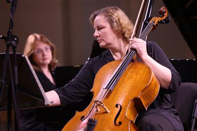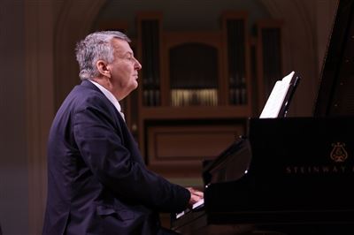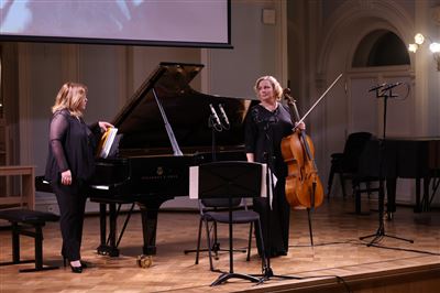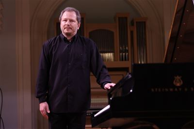 Просветительский концерт-беседа к 125-летию со дня рождения Марии Вениаминовны Юдиной (1899-1970). Рахманиновский залКонцерт ведёт доцент Российской Академии музыки имени Гнесиных, ученица М. В. Юдиной Марина Анатольевна ДроздоваПросветительский концерт-беседа к 125-летию со дня рождения Марии Вениаминовны Юдиной (1899-1970). Рахманиновский залНа экране Рахманиновского зала видеофрагмент из фильма «Портрет легендарной пианистки» Я.С. Назарова, племянника М.В. Юдиной (Alma Mater, 2000)Рассказывает композитор и пианист Иван СоколовФ. Шуберт. Клавирштюк №2, D 946. Исполняет Иван Соколов (фортепиано)Просветительский концерт-беседа к 125-летию со дня рождения Марии Вениаминовны Юдиной (1899-1970). Рахманиновский залИван Соколов и Марина Дроздова. Рахманиновский залКонцерт ведёт ученица М. В. Юдиной, автор книг о ней, доцент Российской Академии музыки имени Гнесиных Марина Анатольевна ДроздоваВидеоприветствие Алексея Любимова (фортепиано)На экране видеоприветствие Элизабет Уилсон, автора книги «Мария Юдина. Игра с огнем» (издательство Йельского университета)И. Стравинский. Серенада in A для фортепиано. Исполняет Юрий Мартынов (фортепиано)Юрий Мартынов (фортепиано) на сцене Рахманиновского залаПросветительский концерт-беседа к 125-летию со дня рождения Марии Вениаминовны Юдиной (1899-1970). Рахманиновский залРассказывает Заведующая кафедрой концертмейстерской подготовки Российской академии музыки им. Гнесиных Марина Кравец (фортепиано)М. Гнесин. «Розариум», музыка к двустишьям Вяч. Иванова. Исполняет Светлана Сычёва (сопрано). Партия фортепиано Марина КравецД. Шостакович. Соната для виолончели и фортепиано ре минор, соч. 40. Исполняют Ольга Галочкина (виолончель), Мона Хаба (фортепиано)Мона Хаба (фортепиано), Ольга Галочкина (виолончель) на сцене Рахманиновского залаВедущая концерта, доцент Российской Академии музыки имени Гнесиных, ученица М. В. Юдиной Марина Анатольевна Дроздова