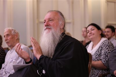 К 125-летию со дня рождения Марии Вениаминовны Юдиной (1899-1970). Перед началом концерта. Рахманиновский залЗрителей приветствует проректор по научной и воспитательной работе Московской консерватории, профессор, доктор искусствоведения Константин Владимирович ЗенкинВступительное слово — викарий Святейшего Патриарха Московского и всея Руси, председатель Синодального миссионерского отдела, председатель Комиссии по работе с вузами и научным сообществом при Епархиальном совете г. Москвы Епископ Луховицкий ЕвфимийЙ. Гайдн. Соната ми-бемоль мажор, Hob. XVI:52. Исполняет Екатерина Державина (фортепиано)Просветительский концерт-беседа к 125-летию со дня рождения Марии Вениаминовны Юдиной (1899-1970). Рахманиновский зал