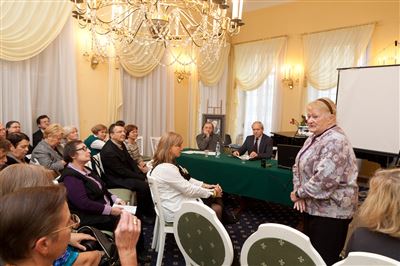 Круглый стол «Ю. Н. Холопов — музыкант, ученый, педагог». Ведущий – доктор искусствоведения, проректор по научной работе Московской консерватории, профессор кафедры истории зарубежной музыки Константин Владимирович Зенкин.Круглый стол «Ю. Н. Холопов — музыкант, ученый, педагог».Выступает доктор искусствоведения, профессор Светлана Ильинична Савенко.Доктор искусствоведения, Заслуженный деятель искусств России, профессор Екатерина Михайловна Царёва демонстрирует свою зачетную книжку с автографом Ю.Н. Холопова.Зачетная книжка Екатерины Михайловны Царёвой с автографом Ю.Н. Холопова.