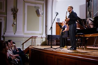 В Малом зале Московской консерватории открылся фестиваль актуальной классики «Re:Fórmers».В Малом зале Московской консерватории открылся фестиваль актуальной классики «Re:Fórmers».В Малом зале Московской консерватории открылся фестиваль актуальной классики «Re:Fórmers».В Малом зале Московской консерватории открылся фестиваль актуальной классики «Re:Fórmers».Ж.Д. Миша. «Back to Bach» для саксофона и фортепиано. Российская премьера. Исполняют лауреаты международных конкурсов, организаторы фестиваля «Re:Fórmers» Виталий Ватуля (саксофон) и Мария Немцова (фортепиано).В Малом зале Московской консерватории открылся фестиваль актуальной классики «Re:Fórmers». Выступает Мария Немцова (фортепиано).В Малом зале Московской консерватории открылся фестиваль актуальной классики «Re:Fórmers». Выступает Мария Немцова (фортепиано).В Малом зале Московской консерватории открылся фестиваль актуальной классики «Re:Fórmers». Выступает Виталий Ватуля (саксофон).На сцене лауреат международных конкурсов, организатор фестиваля актуальной классики «Re:Fórmers» Виталий Ватуля (саксофон).В Малом зале Московской консерватории открылся фестиваль актуальной классики «Re:Fórmers». В Малом зале Московской консерватории открылся фестиваль актуальной классики «Re:Fórmers». На сцене Борис Бровцын (скрипка).З. Кодай. Дуэт для скрипки и виолончели, соч. 7. Исполняют Борис Бровцын и Евгений Румянцев.З. Кодай. Дуэт для скрипки и виолончели, соч. 7. Исполняют Борис Бровцын и Евгений Румянцев.С приветственным словом к гостям фестиваля «Re:Fórmers» обращается выдающийся саксофонист, профессор консерватории Амстердама Арно Борнкамп.С приветственным словом к гостям фестиваля «Re:Fórmers» обращается выдающийся саксофонист, профессор консерватории Амстердама Арно Борнкамп.С приветственным словом к гостям фестиваля «Re:Fórmers» обращается выдающийся саксофонист, профессор консерватории Амстердама Арно Борнкамп.П. Хиндемит. Соната для саксофона и фортепиано. Исполняют Арно Борнкамп и Мария Немцова.